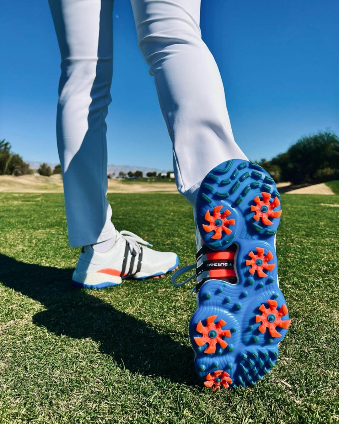 而在科技層面上,使用了TOUR360 FIT科技,結合Feet You Wear™ Last技術幫助球友在橫向的動作上,能利用與地面的貼合度產生動能輔助,更優雅不費力地完成揮桿。