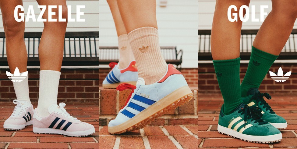 為搭配 Originals Golf 系列,推出全新鞋款 COURSECUP,以 adidas 於 1986 年首次推出的 GOLD CUP 高爾夫球鞋為靈感。COURSECUP 採用中性鞋碼及真皮鞋面搭配翼紋雕花設計。Gazelle Golf 則提供男女款式,採用強化緩震設計與耐用 AdiWear 無釘外底,為高爾夫球員在球場上提供額外支撐與舒適度。保留經典 Gazelle 外型,展現高端質感。
