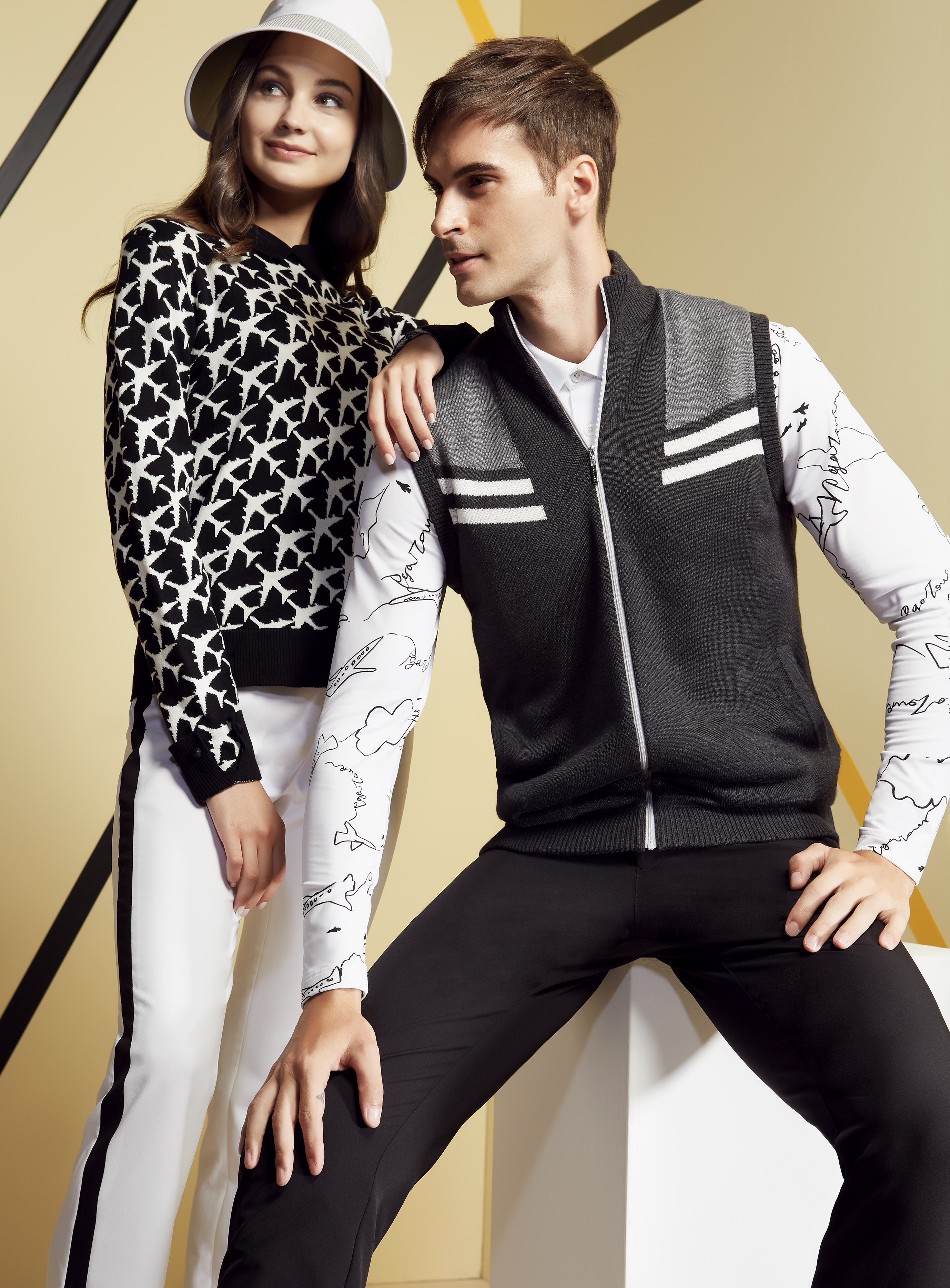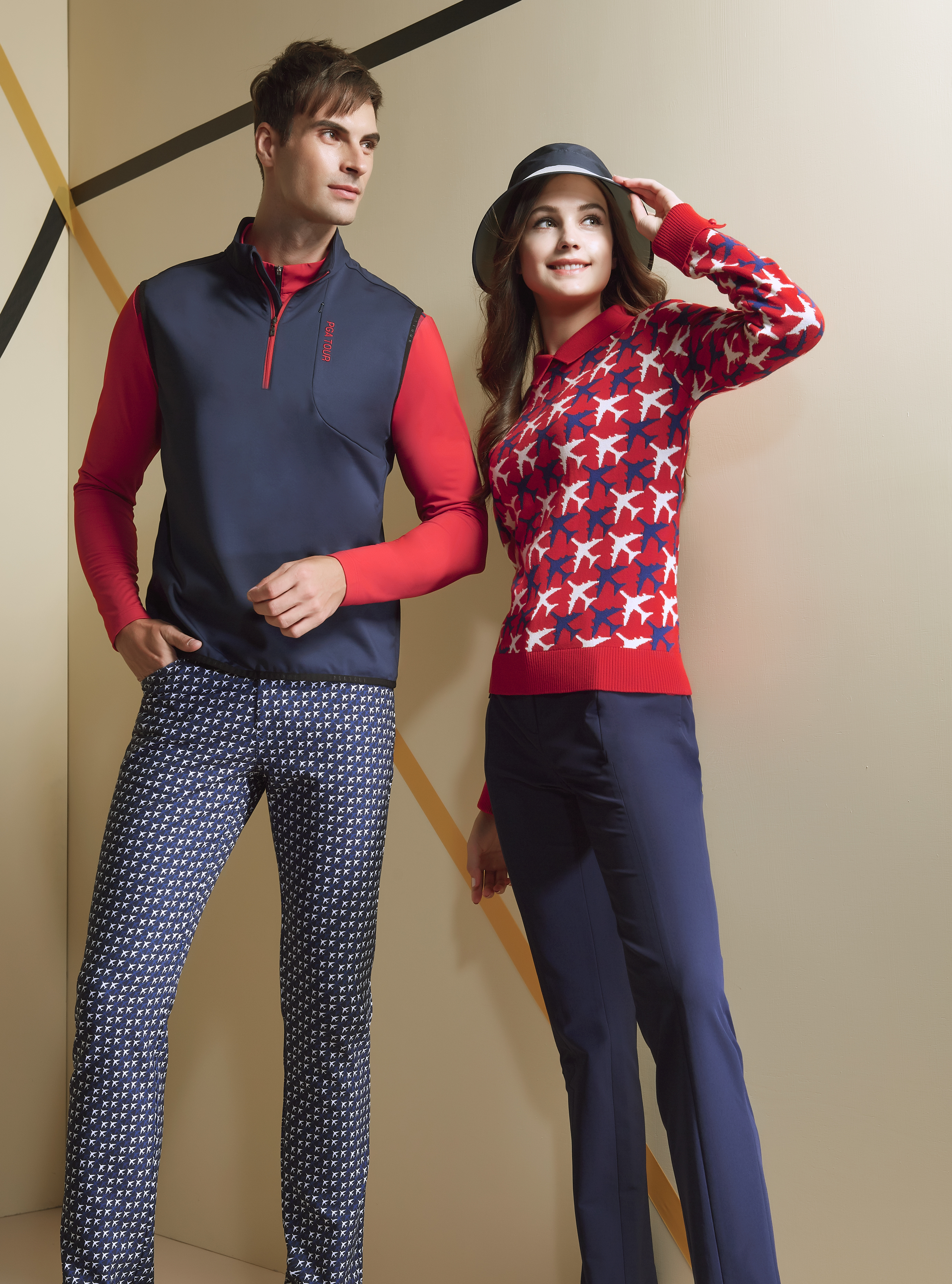 PGA TOUR 以美國西雅圖-噴射機之城為設計靈感,運用波音客機剪影、航線圖、地球剪影等圖騰,化為印花,展現出俏麗與繽紛的味道。