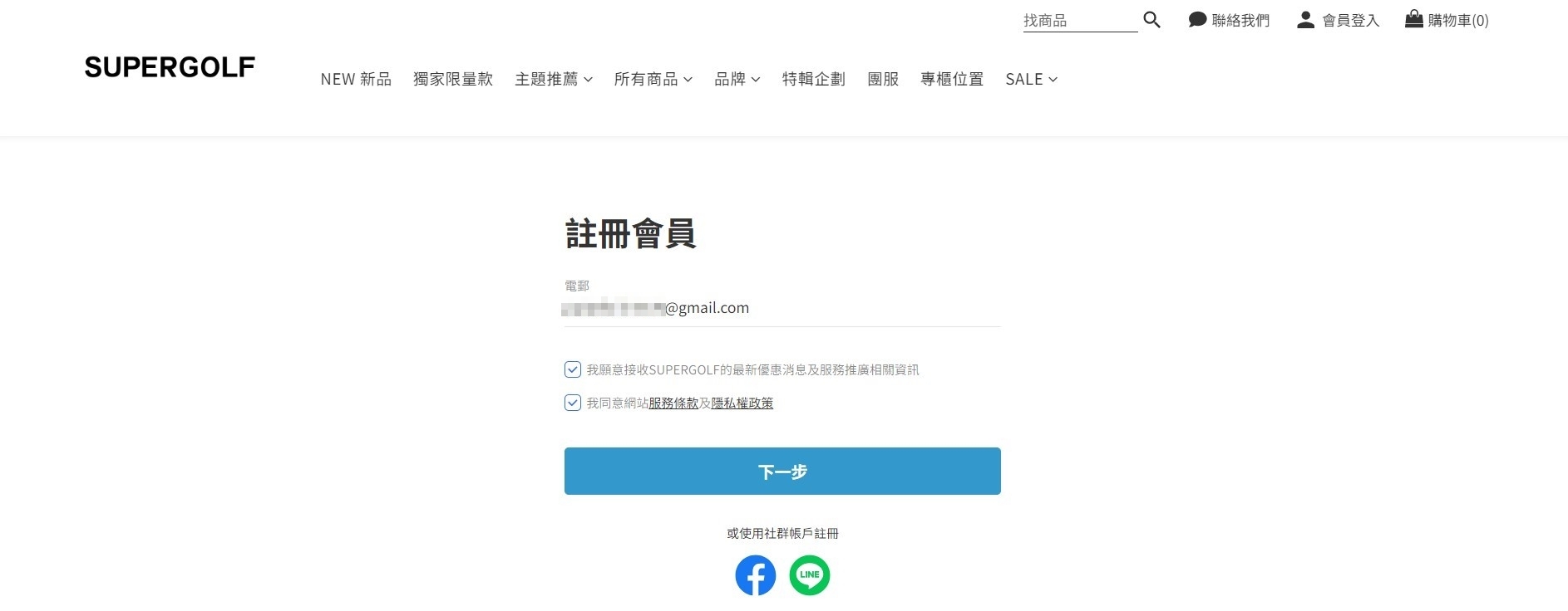1. 點按會員推薦連結後前往商店首頁,點按「立刻註冊」按鈕進行註冊。