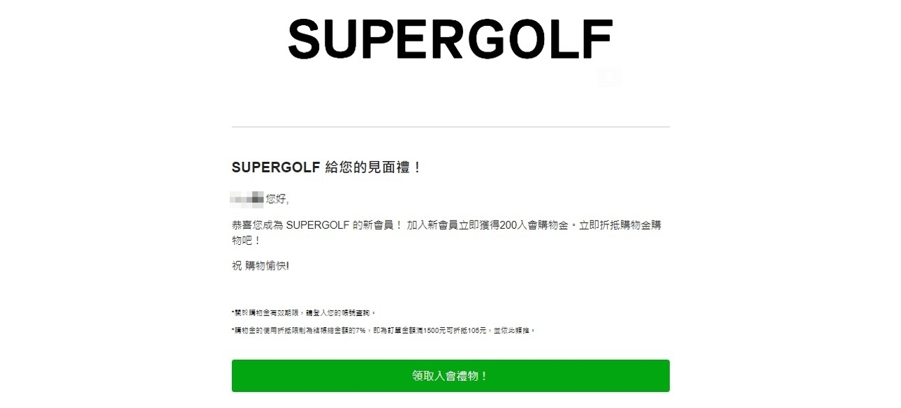 新會員 (會同時收到兩封購物金通知信件)